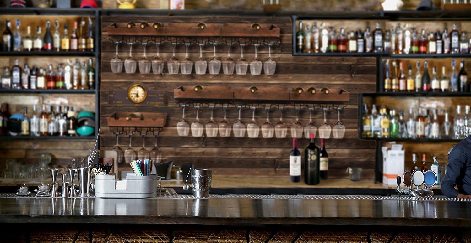 Metal Bar Stemware Storage Racks For 12 Glasses Kenley Wall Mounted Modern Wine Rack With Glass Holder Rustic Wood Horizontal Floating Hanging Shelf For 4 Bottles Wine Racks Cabinets Kitchen from images-na.ssl-images-amazon.com A wide variety of metal bar shelves options are available to you, such as material, feature, and use. One heavy duty floating metal shelf bracket made with 2 wide x 1/4 thick flat bar steel with a 6 leg that mounts to the wall and 1 lip. Our metal wall shelf is constructed from a single piece of diamond plate giving it enough strength to hold up to 150 lbs and a rugged, sleek look. Wall mounted shelves made of metal pipes. Small metal bar attached to keep shelf items in place. This shelf has a zinc fixture, making it a convenient accessory due to its durability and lightweight build. Circular or oval wall shelves give a simplistic touch to your place whilst giving a modern look. Shop wayfair for all the best metal wall shelves.
